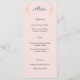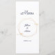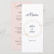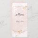 Une élégante carte de menu de réception de mariage conçue avec un arrière - plan rose pâle, du texte de la marine et des surbrillances d'or. Le texte de devant comprend : Menu, Les Noms de la Mariée et de la Salle et Date du Mariage. L'envers comprend : Appetizer, Entre et Dessert Selections. Pour personnaliser, insérez simplement vos détails dans notre modèle facile, en remplaçant l'exemple de texte. Assurez-vous de voir l'ensemble de la collection de Mariages Blush Pink, Gold et Navy pour les pièces correspondantes.