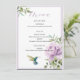 Il s'agit d'une image simple et adorable, avec un rose violet aquarelle, des feuilles et un colibri vibrant contre un arrière - plan blanc avec une bordure mauve douce.