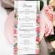 Belles colonnes de roses roses roses et feuillage vert d'aquarelle élégantes sur une subtile aquarelle pastel arrière - plan et étiquette central aux bordures d'or. Fonctionne avec un graphique texte "Menu" en police de script personnalisée (ou supprimer et customiser dans l'éditeur de conception) avec des champs de texte modifiables. Inclut des blocs de champs de texte modifiables pour un dîner complet à la réception.