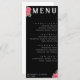 Menu mariage noir aux roses rouges. Personnalisez-le avec les détails de votre événement et la liste des repas.