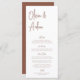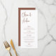 Conçu pour correspondre à nos invitations de mariage de Script manuscrit moderne. Une belle conception typographique à l'atmosphère minimaliste, avec un script manuscrit moderne en terre cuite et des lettres serif classiques. Personnalisez avec vos éléments de menu à l'aide de huit champs de texte personnalisés.