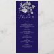 Réglez un ton sophistiqué à votre réception avec ce menu de mariages bleu royal qui présente des oeuvres d'art florales argentées délicates et une calligraphie élégante. Parfait pour les mariages d'hiver, ce design raffiné met en valeur vos choix de repas personnalisés dans un agencement propre et gracieux.