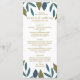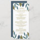 Ces cartes de menu sont parfaites pour tout couple qui planifie une fête mariage moderne branchée. Le design présente des feuilles de feuillage dessinés à la main dans les tons bleu et vert sur un arrière - plan blanc propre et est fini avec un libellé simple à modifier. Le design simple peut être personnalisé pour votre événement spécial et sera le menu parfait pour toute fête à thème floral, y compris : douches nuptiales, fiançailles, wedding showers, fêtes d'anniversaire et bien plus encore.