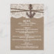 La collection rustique d'ancre nautique de mariage de plage est un design étonnant avec un bel arrière - plan rustique effet burlap avec un cadre romantique vintage effet dentelle blanche finie avec une ancre nautique et ficelle. Ces cartes de menu peuvent être personnalisées pour votre occasion spéciale et rendraient le modèle parfait pour les menus mariages, les menus de douche nuptiale, les menus de fiançailles, les menus de fête d'anniversaire et bien plus encore. *Veuillez noter que Zazzle ne vend que des produits imprimés, de sorte que cet article n'a pas de véritables matériaux de braconnage, dentelle, ancre ou ficelle.