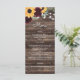 Complete your reception tables with this beautifully coordinated rustic wedding menu card featuring sunflowers and burgundy roses, designed to bring warmth and elegance to your dining experience. Set against a rich woodgrain background, this menu perfectly captures the charm of a countryside or barn wedding while maintaining a refined and polished look.