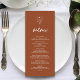Le menu Rustic Burnt Orange Boho Botanical Mariage Menu apporte une élégance chaleureuse et terreuse à votre réception de mariage, parfait pour les couples qui planifient une chute, une fête en plein air ou une fête d'inspiration bohème. Doté d'une riche palette de couleurs orangées brûlées et d'oeuvres d'art botaniques délicates, ce menu ajoute une touche cohésive et élégante à votre paysage de table tout en guidant les clients à travers l'expérience de dîner. Son mélange de charme rustique et d'ambiance boho en fait un détail remarquable que les cravates apprécient dans une belle harmonie avec la décoration mariage. Facilement personnalisable sur Zazzle, les couples peuvent personnaliser le texte pour refléter leur menu unique et leur style mariage avec facilité.