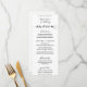 Un menu classique de mariage de calligraphie rustique avec une police de swash script d'écriture. Ce menu classique est personnalisable pour tous les événements et propose des entrées, des plats et des desserts ainsi que des options de bar ouvert.