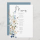 Menu Rustique Dusty Blue Fleurs sauvages & Daisy Mariag