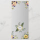 Elégante, moderne, botanique, menu mariage violet en bois rustique avec fleurs d'aquarelle, tournesols et verdure.