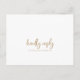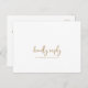 Cette carte postale RSVP est idéale pour un mariage campagnard. Le design simple et moderne d'or et de blanc présente une calligraphie manuscrite unique et fantaisiste, avec un style boho minimaliste contemporain. Personnalisable dans n'importe quelle couleur. Gardez le design minimal et simpliste, en l'état, ou personnalisez-le en ajoutant vos propres graphiques et artwork. Cette carte postale de réponse mariage demande à la clientèle quel repas elle souhaite à la réception.