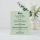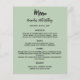 Un arrière - plan vert sage. Texte noir. Personnalisez et ajoutez votre nom, votre date et le menu. Vous pouvez ajouter du texte, des photos à l'arrière. 1 feuille = 1 menu imprimé bord à bord.