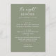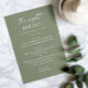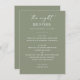 Set eines ruhigen Tons für "The Night Before" mit diesem schlauen, grünen Probe Dinner Menü. Die weiche, erdige Farbe und die saubere, minimalistische Gestaltung machen es zu einem idealen Ort für Garten, Wald oder Hochzeitsthemen - besonders im Frühling, Sommer oder Frühfall. Dieses Speisenangebot ist sowohl für Paare als auch für Hochzeitsplaner konzipiert, die ein gepflegtes und einheitliches Ambiente gewollt haben. Personalisieren Sie mit Ihren Abendkursen und Veranstaltungsdetails, um Ihre Feier Anzug.