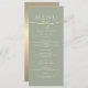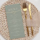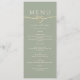 Minimum, modern calligraphy sage green wedding menu with gold rope heart and simple calligraphy script.