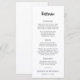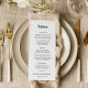 Cette carte de menu mariage fait une déclaration avec son script moderne et audacieux. Les couleurs noir et blanc créent un aspect frappant et sophistiqué, tandis que l'agencement clair permet à vos invités de profiter facilement des cours organisés prévus pour votre journée spéciale.