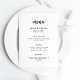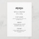 Cette carte de menu mariage élégante et minimaliste est dotée d'une typographie de script moderne et d'un texte sans serif propre, pour un design noir et blanc simple et élégant que vous aimerez.