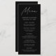 Faites l'éloge de votre réception de mariage avec notre menu mariage magnifiquement conçu, avec un script blanc manuscrit élégant sur un arrière - plan noir. Parfait pour les couples à la recherche d'un look simple mais sophistiqué, ce design moderne vous permet de personnaliser avec vos noms, date mariage et menu. Son style minimaliste s'inscrit sans effort dans un thème mariage, ajoutant une touche d'élégance à votre journée spéciale. Faites une impression durable sur vos invités avec un menu qui reflète la simplicité chic de votre vision mariage.