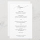 Menu mariage blanc classique avec en-tête dans un script délicat. Une disposition simple sans aucun graphisme en fait un design élégant et intemporel, parfait pour un mariage formel. Ces menus mariages bon marché sont imprimés sur des feuilles de papier pour une option économique.