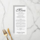 Ce menu mariage est simple, élégant et élégant. Il comporte des lettres noires fantaisie sur un arrière - plan blanc. Sobre et minimaliste, ce menu a un style classique intemporel qui ajoutera un air de sophistication et de style à votre réception de mariage.