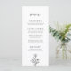 Séduisez vos invités avec le style simple mais étonnant de notre menu Mariage Floral Black & White. Ce menu présente la beauté naturelle d'un motif botanique sans distraire votre esthétique mariage globale. Ses couleurs classiques noir et blanc et ses lignes épurées créent un air d'élégance raffinée qui impressionne vos proches. Faites de votre repas une expérience inoubliable grâce à ce menu polyvalent.