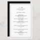 Un menu mariage simple au design moderne et élégant avec votre monogramme à deux lettres, vos noms et votre date entourés d'une fine bordure. Tout le texte est en noir, sur un arrière - plan blanc et l'arrière est en noir solide. Les polices et les couleurs arrière - plans peuvent être changées en n'importe quelle couleur en cliquant sur le bouton "personnaliser". Un design chic et design qui conviendra à un couple minimaliste. Ces menus mariages bon marché sont imprimés sur des feuilles de papier pour une option économique.
