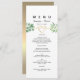 Simple, moderne, élégant menu rustique mariage avec coeur romantique de corde dorée et verdure feuille d'eucalyptus.