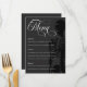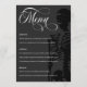 Goth menu mariage dans les tons fusain, noir et blanc avec squelette et jolies polices.