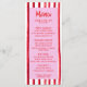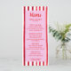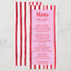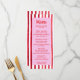 This modern wedding menu pairs bold hand-painted red stripes with a soft pink center for a look that’s playful, romantic, and full of personality. Expressive brush lettering highlights each course, turning your reception menu into a statement piece that feels artistic and intentional. Perfect for contemporary or destination weddings, this menu adds a pop of color to place settings while tying your stationery together with confident, joyful style.