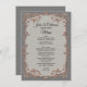 Menu de table mariage gris chic avec des graphiques d'un cadre de guirlande rose couleur pêche et ivoire. Jolie addition à vos tables de réception de mariage. Personnalisez le texte pour répondre à vos besoins de réception.