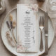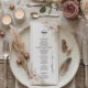 Elevate your special day with an earthy, nature-inspired design featuring soft terracotta tones, dried botanical graphics, and a warm, inviting aesthetic.This composition utilizes a warm, earth-toned palette dominated by muted terracotta, soft beige, and muted sage green. The visual hierarchy centers around elegant, arched structural framing paired with a sophisticated mix of contemporary serif typography and flowing, relaxed hand-lettered script. Subtle, printed watercolor illustrations of dried pampas grass and delicate wildflowers border the text, creating a balanced, organic layout against a clean, untextured-looking cream background. This is a flat printed image with a faux textured effect, not actual raised material.