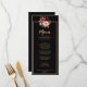 Un automne chic noir moody terre cuite brûlé orange mariage menu dîner automne. Ce qui présente des fleurs de crème beige orangée brûlée et ivoire comme des feuilles de pivoine et de chute.
