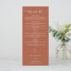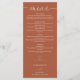Cet élégant menu de mariage de script coeur en terre cuite peut être personnalisé avec vos informations dans la typographie chic. Conçu par Thisisnotme©