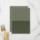 Cette carte de menu verte mousse avec une séparation inférieure présente une moitié supérieure mate élégante et une section inférieure richement texturée. Le design offre un rythme visuel à la fois moderne et prêt pour l'événement. La zone supérieure est parfaite pour les titres d'événements, les listes de dîner ou les affectations de table au format propre, tandis que la texture mouchetée en bas ajoute une touche sophistiquée et artisanale.