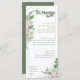 Carte à la carte de mariage boho fleuri moderne et élégant. Le design est composé d'éléments floraux de sauce d'aquarelle à l'avant et d'arrière - plans verts sauge à l'arrière. Customisez-le facilement avec vos détails mariages.