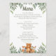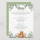 Bois Animaux Eucalyptus Green Baby shower Feuille Menu. Ce design de haute qualité est facile à customiser pour correspondre à vos couleurs, styles et thèmes baby showers.