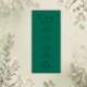Présentant notre carte de menu mariage exquise dans un vert émeraude minimal, la typographie du menu noir et une sortie tropicale verdoyante, le design monstère de l'autre côté. Hobinishop