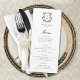 Ces Vintages cartes de menu Mariage de Monogram Crest, en noir et blanc classique, allient élégance intemporelle et sophistication moderne, avec une crête monographique de la Renaissance fleurie ornée et une typographie classique élégante.