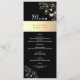 Vintage, botanique, boho, chic, calligraphie, menu mariage moderne, élégant noir et or avec dentelle dorée fleurie.