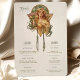 Améliorez votre réception de mariage avec ce menu et cette carte de boissons d'inspiration Art Nouveau, avec une femme vintage magnifiquement illustrée, ornée de fleurs et de détails fluides. L'élégant design apporte une touche de sophistication classique avec des verts muets, des jaunes chauds et des tons doux et roux. La partie avant détaille les options de cuisine, y compris les entrées, le plat principal et les desserts, tandis que l'inverse propose une sélection de cocktails, de bières et de vins. Parfait pour un mariage à thème vintage, cette carte allie charme d'antan et beauté artistique, créant un souvenir inoubliable pour vos invités.