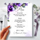 "Ravissez vos invités avec notre menu de mariage magnifiquement conçu, mettant en valeur des accents floraux élégants violets et argentés sur un fond ivoire raffiné. Un mélange parfait de sophistication et de style pour votre jour spécial."