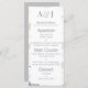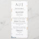 Ce menu de mariage élégant et moderne présente un fond blanc avec une bordure de feuilles de fougère disposées autour du bord. Les couleurs des fougères vont du beige doux et du tan à un bleu azur ou marine. Deux exemples d'initiales sont imprimés dans la partie supérieure dans une police grise élégante. Vous pouvez personnaliser le menu pour inclure vos propres initiales et options de plats personnalisées. La partie inférieure du menu propose trois plats avec deux options chacun. Vous pouvez remplacer les plats du menu par les options culinaires de votre choix. Le dos du menu est d'une couleur gris uni. Il convient pour les événements petit-déjeuner, brunch, déjeuner ou dîner.