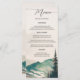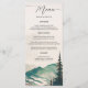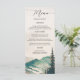 Présentez votre fête mariage de manière visuellement agréable avec le menu Mariage Watercolor Mountains Pine Forest. Ce menu, imprimé sur un stock de carte de haute qualité, présente une scène d'aquarelle paisible de montagnes et d'une forêt de pins, reflétant la grandeur naturelle de votre thème mariage. Les plats de votre repas d'accueil sont listés dans une typographie claire et moderne, faisant du voyage culinaire une partie de l'expérience visuelle. Idéal pour un mariage sur le thème de la montagne, de l'extérieur ou de l'aquarelle, ce menu transforme votre réception en festin pour les sens.