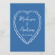 Share your reception menu in style with this whimsical wedding menu card designed to coordinate with modern and playful wedding stationery. The front of the menu features “Menu” displayed in a handwritten blue script with your wedding menu details shown below on a light blue background, creating a fresh and cheerful look for your reception tables. The back of the wedding menu card showcases a hand-drawn light blue heart surrounding the couple’s names and wedding date, adding a sweet and cohesive detail. Perfect for couples planning a fun, romantic celebration, this customizable wedding reception menu adds color and personality while keeping menu selections easy to read for guests.