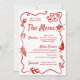 Menu Whimsical de bordures ondulées manuscrite Ce menu d'évènements comporte une police manuscrite et des graphiques dessinés à la main avec une bordure cireuse. Parfait pour toute douche nuptiale, mariage, fête d'anniversaire ou dîner de répétition ! La couleur du texte et des graphiques est modifiable.