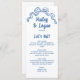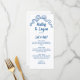 Cette carte de menu mariage moderne présente une illustration de l'arc dessinée à la main et une typographie à la main dans l'ombre parfaite du bleu. Le look est fait à la main et amusant, mais encore romantique et élégant! Voir la collection pour plus d'éléments.
