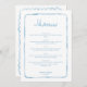 Menu Whimsical Light Bleu Blanc Simple Mariage de cadre
