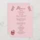 Ce menu mariage chic propose des bijoux biscornus et des éléments mariage rose fantaisie. Facile à personnaliser avec votre propre menu mariage pour éblouir vos invités.