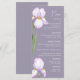 Menus for a modern wedding. Delicate irises in soft lilac shades are depicted against a pastel background, creating an atmosphere of sophistication and tranquility. The design is modern and airy, perfect for a stylish, romantic wedding.