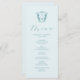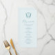 Ce menu de mariage élégant présente une simple crête monographique avec les initiales de la mariée et du marié. Le mot "Menu" est défini dans le script de calligraphie. Utilisez les champs modèle pour ajouter vos éléments de menu personnalisés en turquoise sur un arrière - plan bleu pâle. Parfait pour les mariages, les dîners de répétition, les fêtes de fiançailles et plus encore.