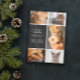 Eine hübsche, schwarz-weiße Weihnachtskarte mit Weihnachten aus Meowy, in weißen, handgeschriebenen Schriftart, mit Ohren und Whiskers dekoriert. Fügen Sie fünf Fotos Ihrer Katze(n) hinzu, zusammen mit Ihren Namen und dem Jahr.