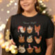 Weibliches Weihnachtsfrauengeschenk mit handgezeichneter Abbildung verschiedener Katzen in Urlaubskostümen.